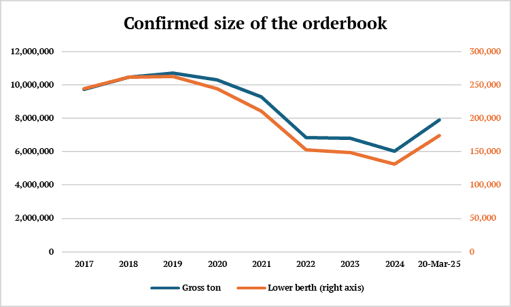After five consecutive years of shrinking, the size of the orderbook showed a decisive uptick in Q1 2025.